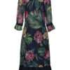 Thiết kế của KK93-29 phù hợp với tuổi trung niên nhờ dáng suông nhẹ thoải mái, có khả năng giấu nhẹm hầu hết mọi khuyết điểm cơ thể trong nháy mắt, bao gồm vòng eo, hông đùi chưa thon gọn và cả bắp tay thô to kém nữ tính. Đối lập với phần thân trên sử dụng chất liệu voan kim tuyến đầy màu sắc độc đáo và nổi bật, phần đuôi cá nhúng bèo với gam màu xanh sẫm thanh lịch sẽ giúp nàng trở nên thời trang, tinh tế hơn trong những dịp đặt biệt.